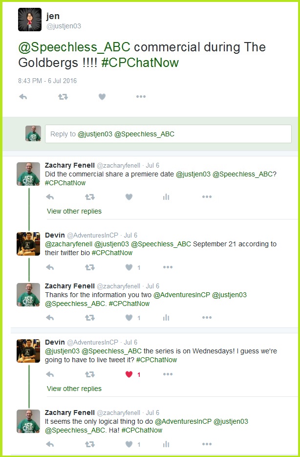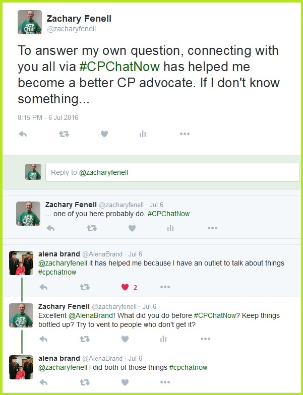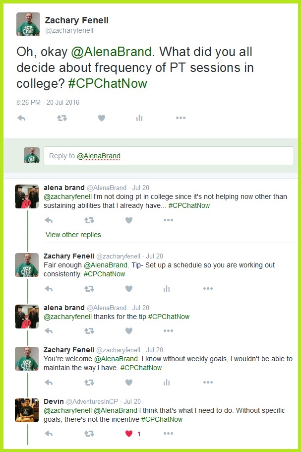 Read the specific post for more context. Make sure you like the Facebook page too! Blake and I work diligently to share cerebral palsy related stories through the page. Similar to the extend-the-conversation question, the Facebook page keeps the community fun pumping all week long.