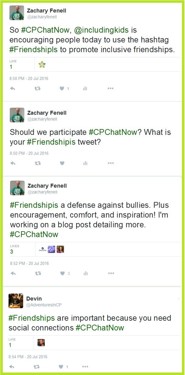 Also on July 20th, National Inclusion Project ran a hashtag initiative. They asked people to use the hashtag “#friendshipis” to promote inclusion. Liking the concept, I suggested we at #CPChatNow participate.