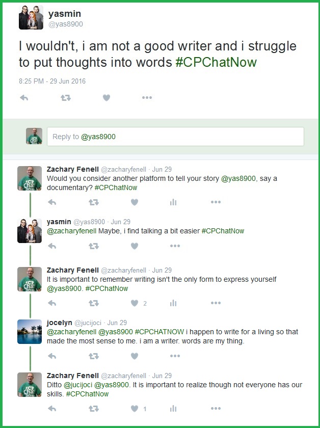 Friendship, safety, and more arose as discussion topics during Wednesday, July 20th, 2016’s #CPChatNow. Co-host Zachary Fenell here with the much delayed recap. My co-host Blake Henry will stop by later in the week with the July 27th recap. In the meantime shall we focus on July 20th?