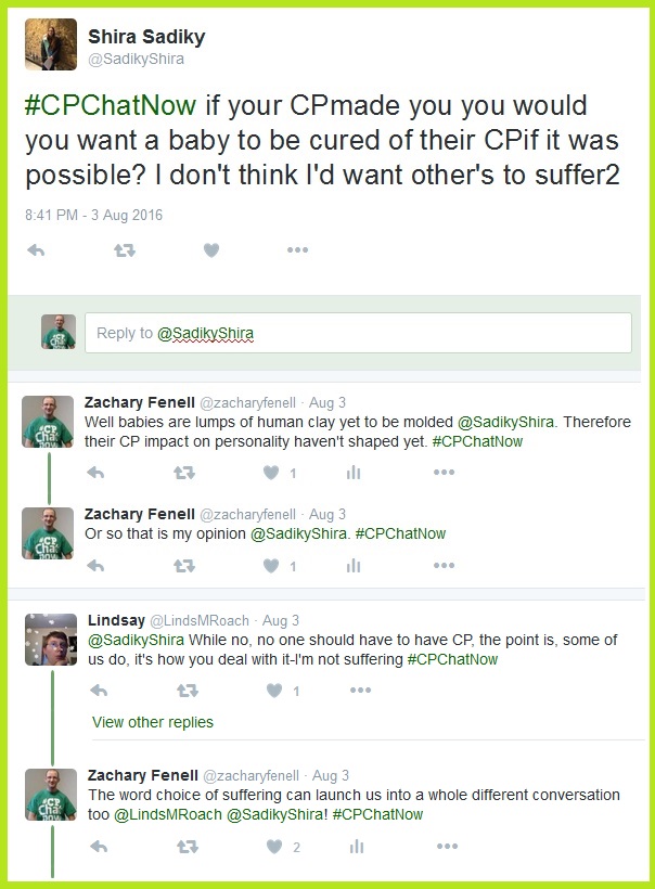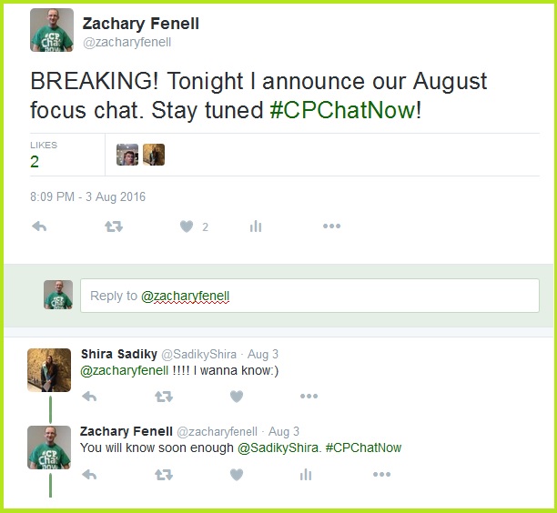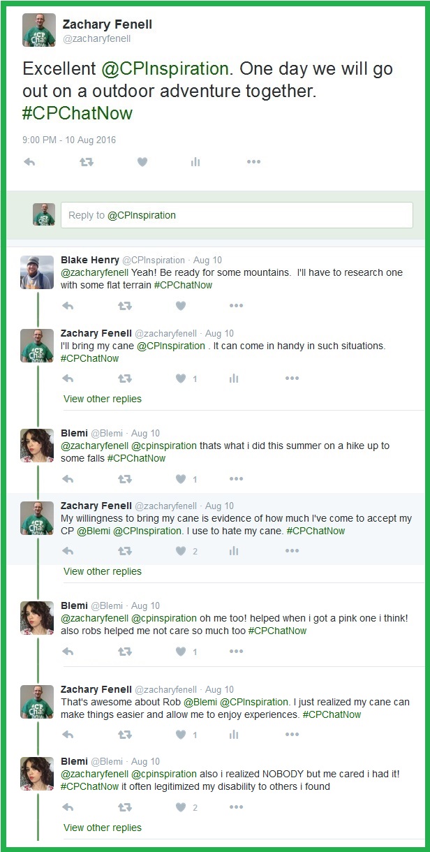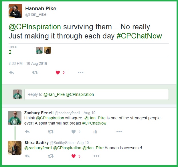 Wednesday, August 24th, 2016 we at #CPChatNow waded into the thought pool’s deep end. I am co-host Zachary Fenell, ready to recap what turned into a very insightful chat. By post end you may think about cerebral palsy in new ways!