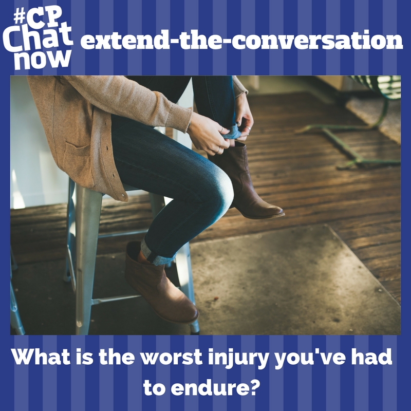 Time to keep the conversation going. Answer for the week’s extend-the-conversation question “What is the worst injury you’ve had to endure?” Respond in the “Comments” section.