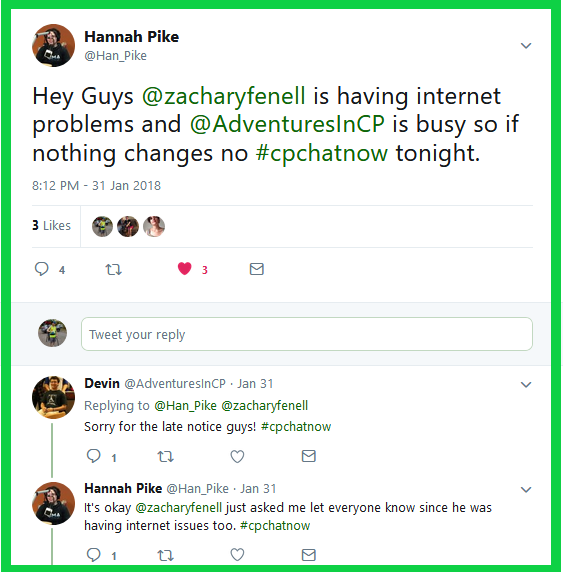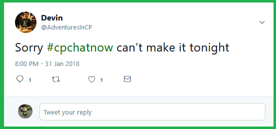 Be sure to join us every Wednesday at 8 PM Eastern on Twitter at #CPChatNow