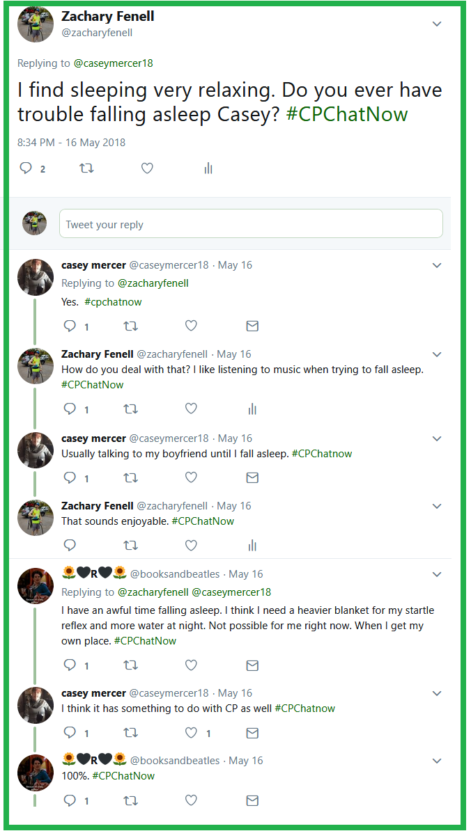 Experience develops into insights and the live cerebral palsy Twitter chat #CPChatNow proved quite insightful Wednesday, May 16th, 2018. I am co-host Zachary Fenell, smarter after this past Wednesday and ready to pass along my newly gained knowledge. So relax and enjoy the May 16th recap.