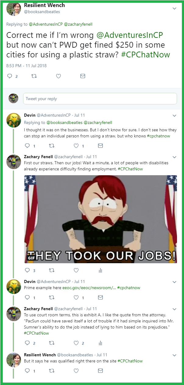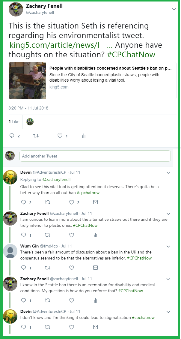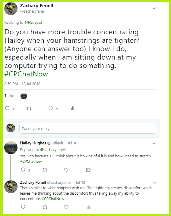 Spasticity held a tight grip on the conversation Wednesday, July 18th, 2018 during the live cerebral palsy Twitter chat #CPChatNow. I am co-host Zachary Fenell, filling in for my co-host Devin Axtman who missed the July 18th chat. Before delving into the night’s discussion, I made a couple housekeeping announcements.