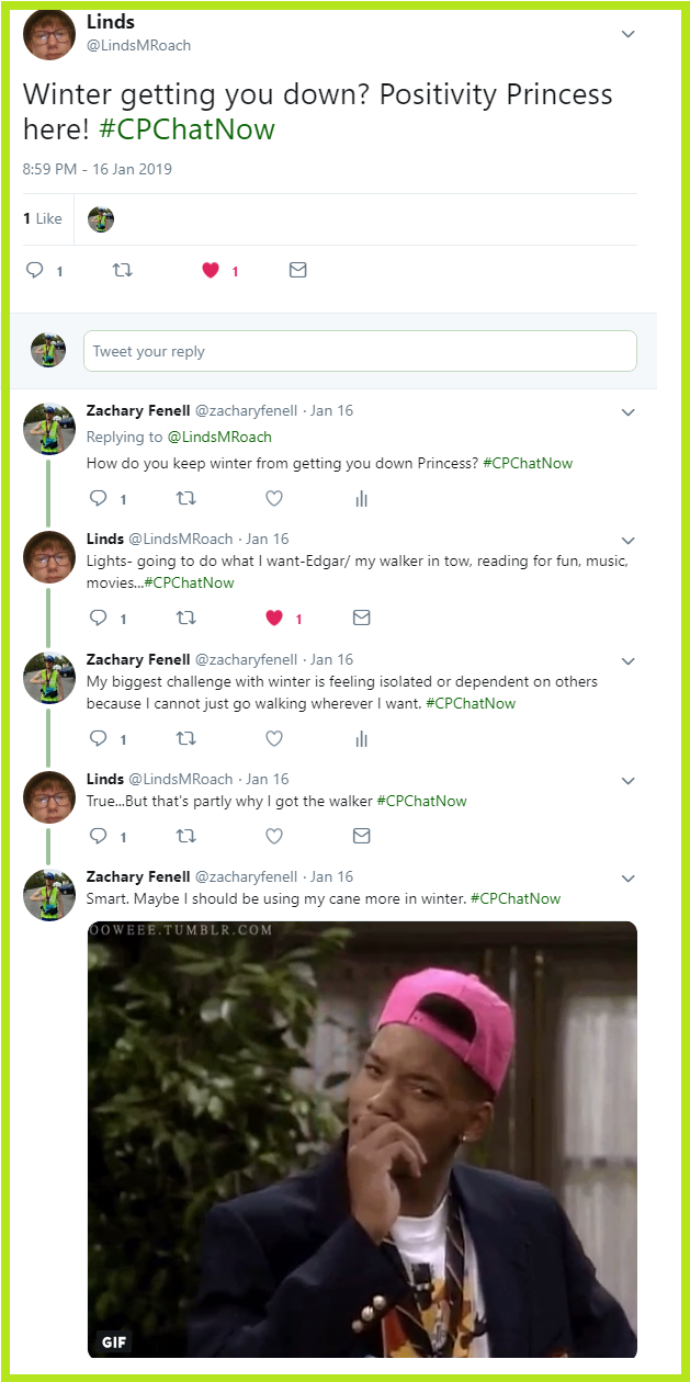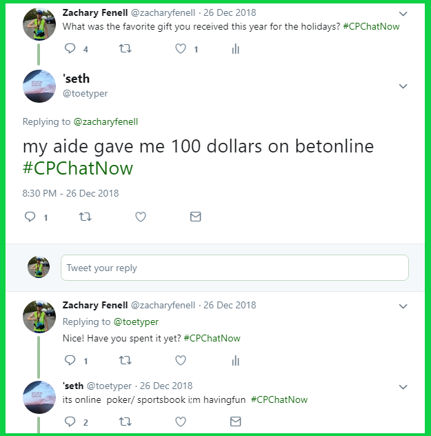 One night removed from Christmas, individuals in the cerebral palsy community gathered for the last 2018 #CPChatNow live Twitter chat. Holidays remained a forefront concentration too, as you will see reading this recap. A recap gifted to you by yours truly, co-host Zachary Fenell.