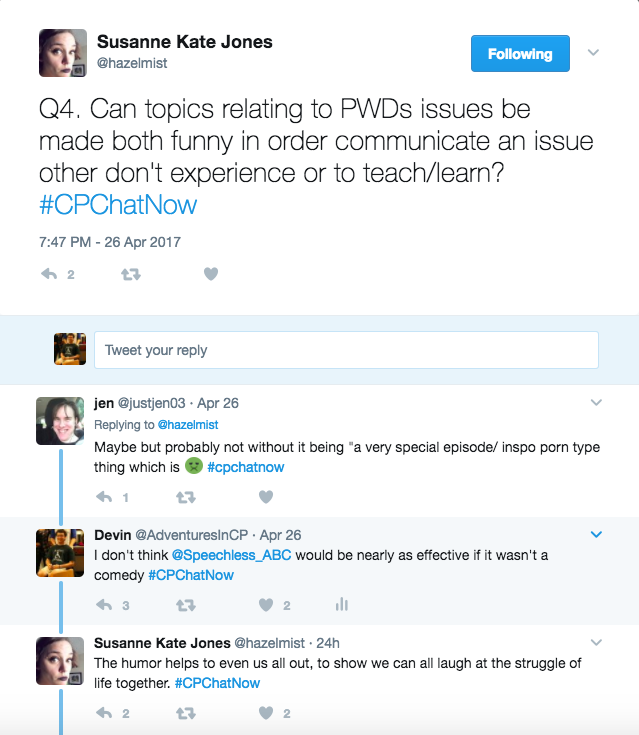 #CPChatNow participants discuss how participating in the weekly Twitter chat has changed their experience of disability.
