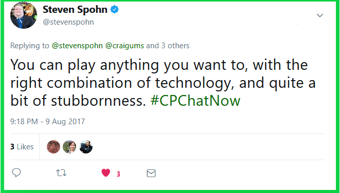 If you remember one tweet from #CPChatNow's accessible gaming focus let it be Steven's tweet "You can play anything you want to, with the right combination of technology and stubborness.Whatever serves as that right combination of technology for you, do tell. Answer the extend-the-conversation question.