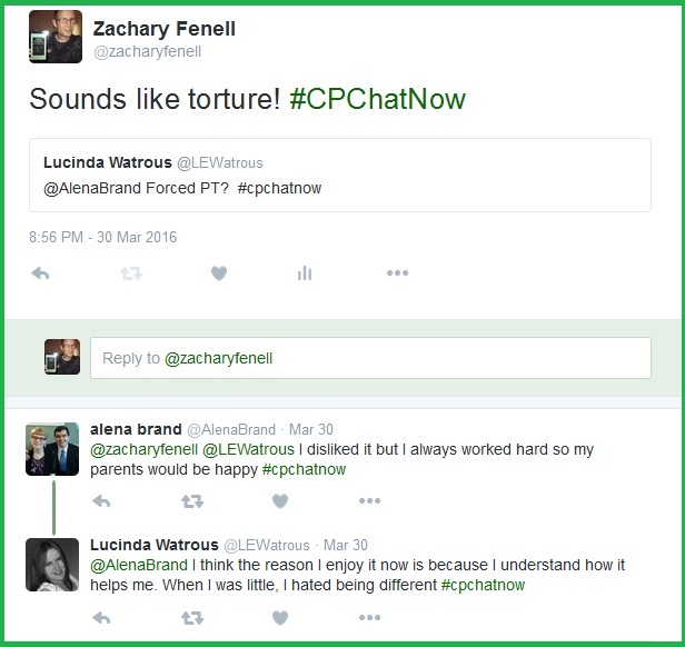 Resembling a box filled with chocolates, the live weekly cerebral palsy Twitter chat #CPChatNow featured quite the variety Wednesday, May 30th, 2018. To keep the analogy going, that makes me, co-host Zachary Fenell, (insert your favorite chocolatier here). So shall we explore the deliciousness embodied by Wednesday’s discussion?
